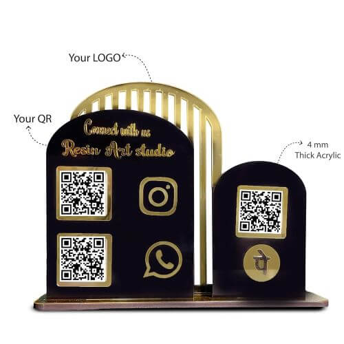 The personalized social media qr code stand is an essential branding and engagement tool for modern businesses. With a single scan, your customers instantly reach your Instagram, Facebook, WhatsApp, Twitter or Google Pay link. No typing, no confusion — just quick and seamless engagement.